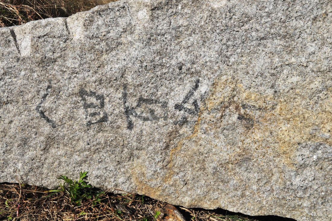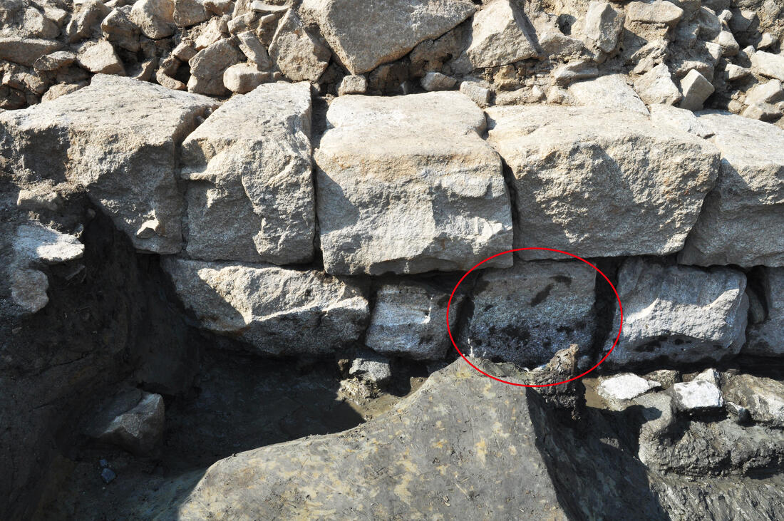拳母城跡から発掘された本物の石垣(墨書石垣)を展示します。